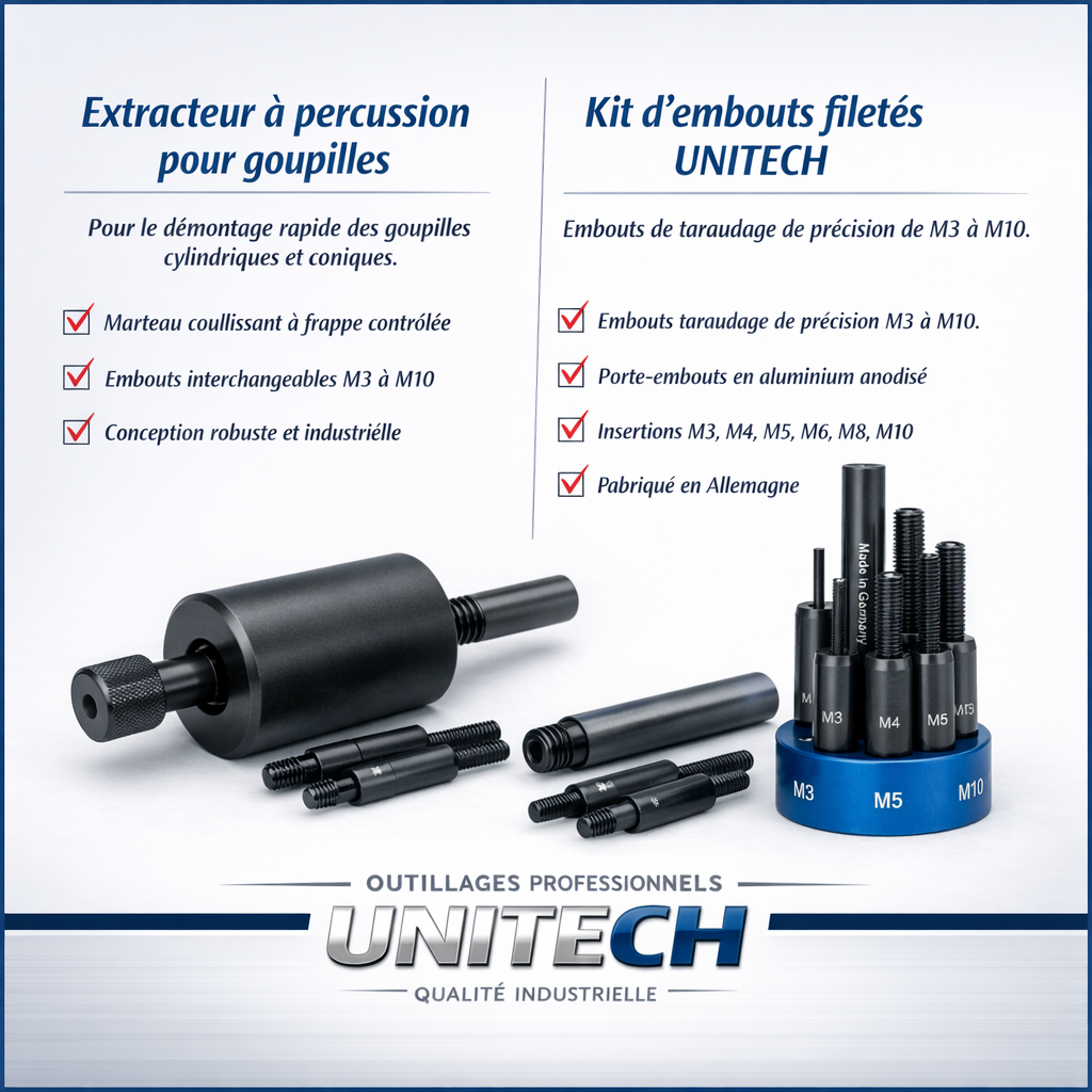 L’extracteur à percussion UNITECH est solide, fiable et facile à utiliser. Il permet d’aller plus vite tout en limitant les risques pour l’opérateur. Sur des pièces bloquées ou dans des conditions un peu compliquées, il fait vraiment la différence.
