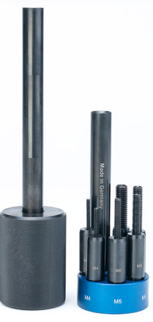 Nos extracteurs sont disponibles avec des embouts amovibles dans les tailles M3, M4, M5, M6, M8 et M10, imperdables dans l‘anneau de réception. Ils sont équipés d’une tige de marteau à percussion de 220 mm avec élément de percussion et d’une tige de raccordement de 136 mm. Chaque extracteur de goupilles est fabriqué en acier bruni et trempé, garantissant une qualité industrielle exceptionnelle.